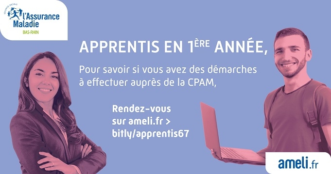 Au regard du nombre important d’apprentis de première année ne disposant pas de dossier d’Assurance Maladie à jour en début d’apprentissage, nous vous invitons à vous connecter à :